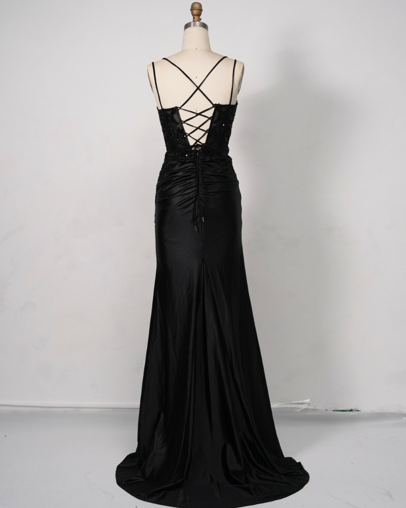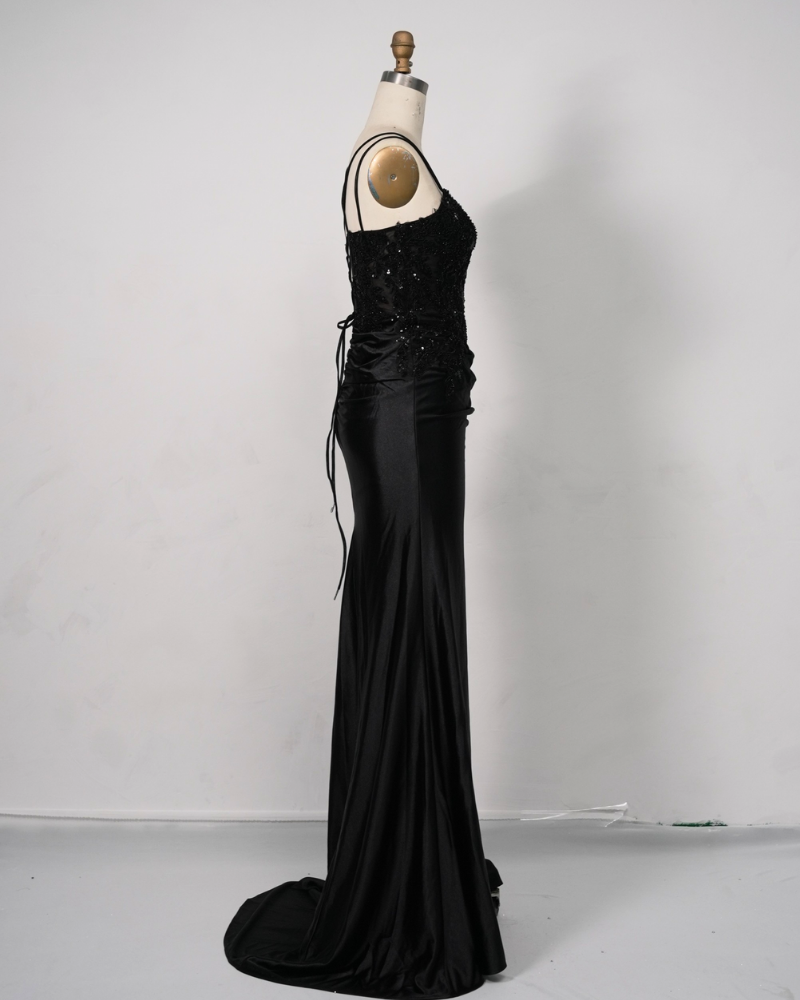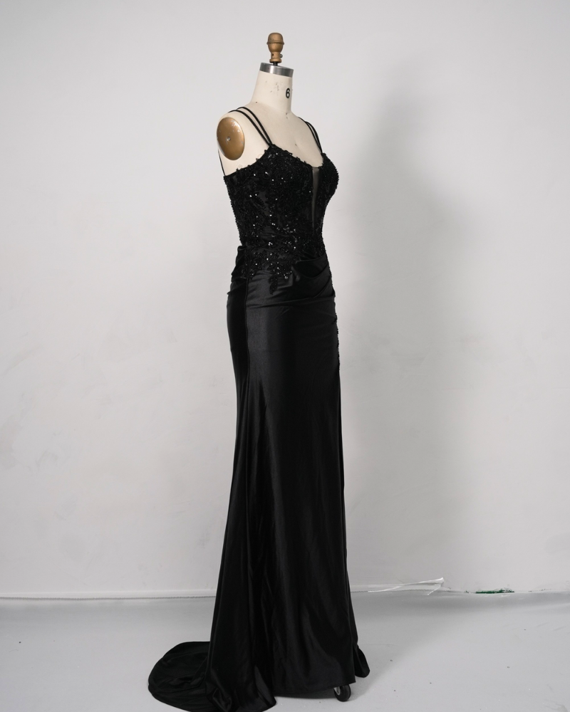 Black Halterneck Sequin Bridesmaid Graduation Dress C250541