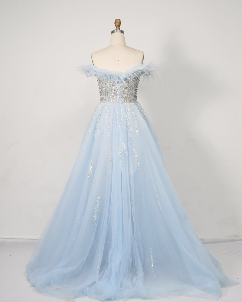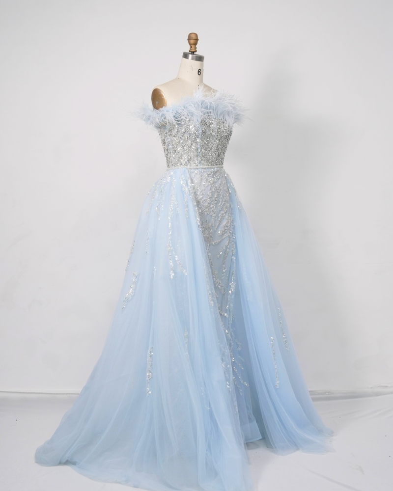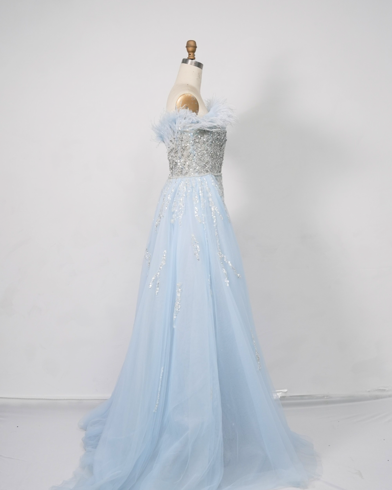 Fabric material:Feather tulle sequin style