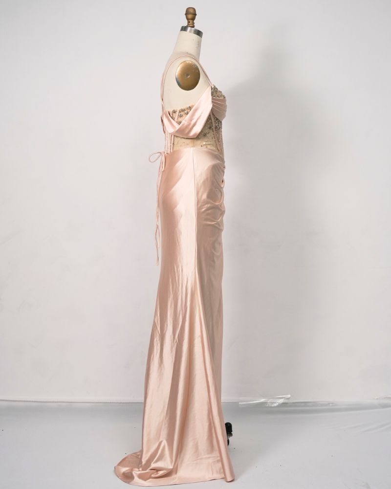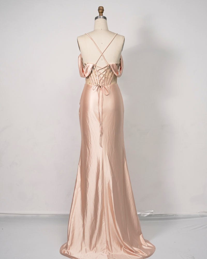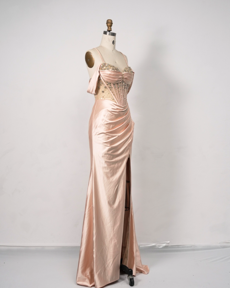 Gold Half-Sleeve Slit Bridesmaid Graduation Dress C250535