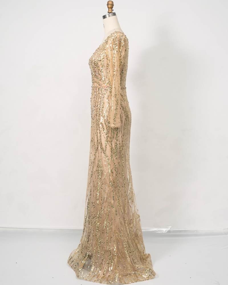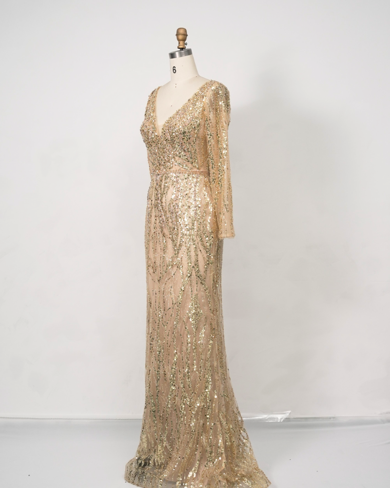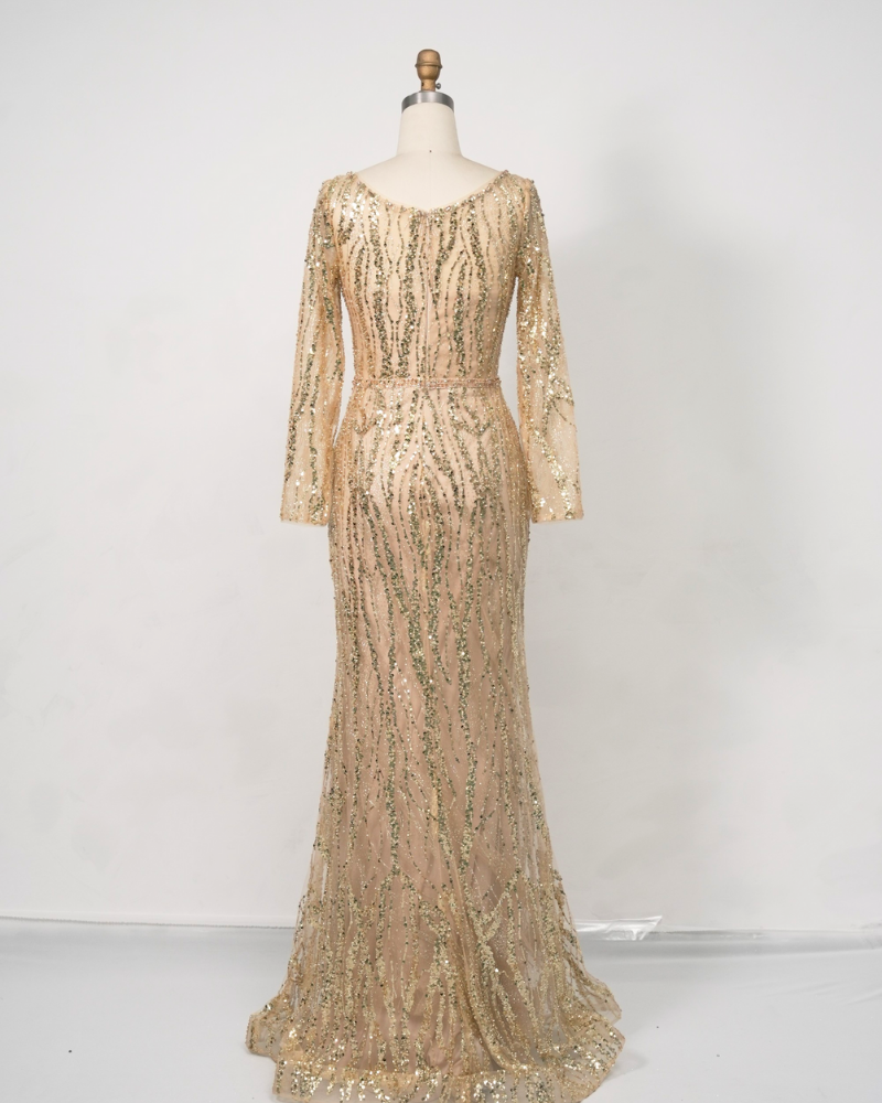 Gold Long-Sleeve Sequin Cocktail Dress C250538