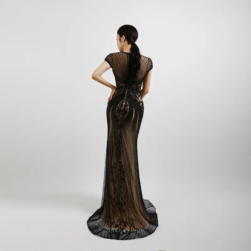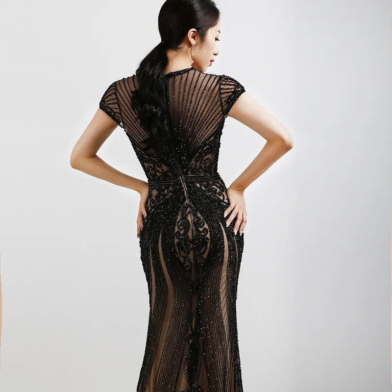Luxury Black Hand-Beaded Hostess Gown C25056
