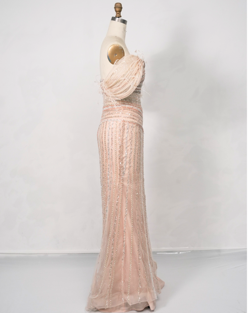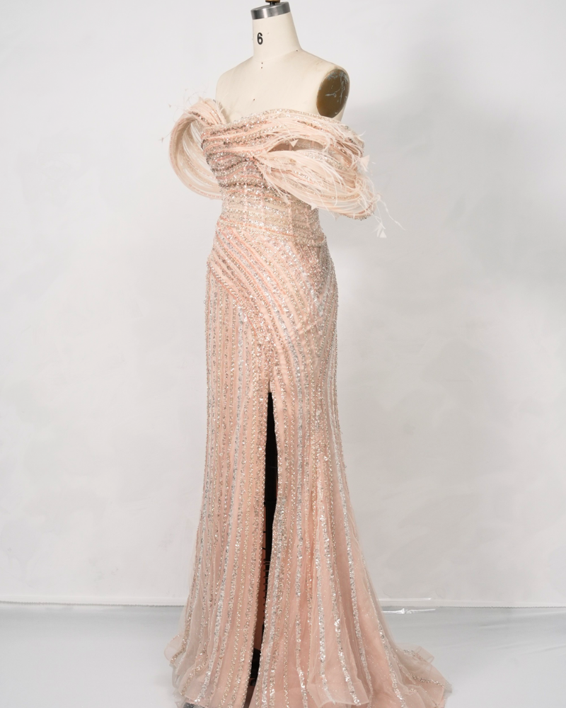 Pink Off-the-Shoulder Slit Cocktail Hostess Dress C250534