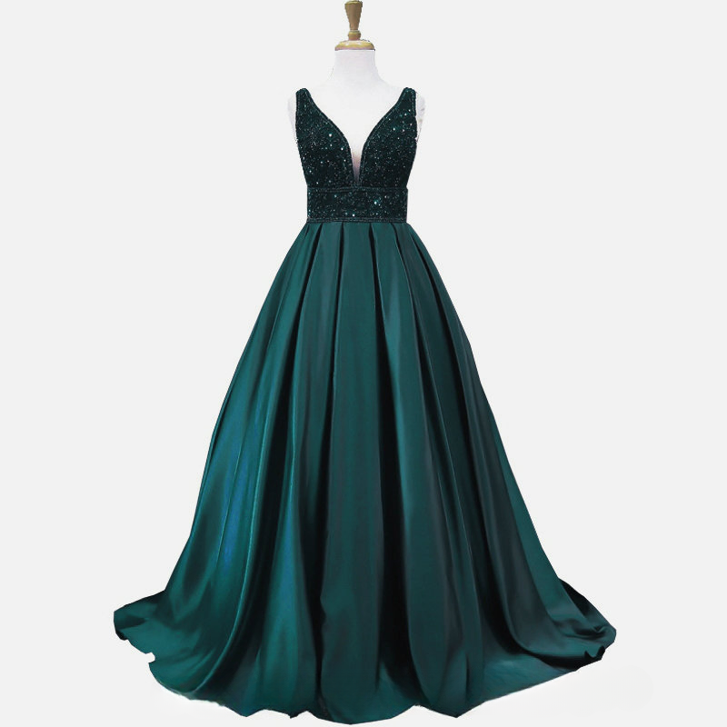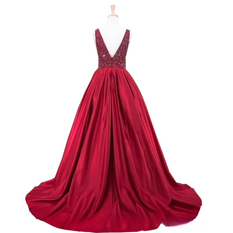 V-Neck Sequin Satin Ball Gown C250514